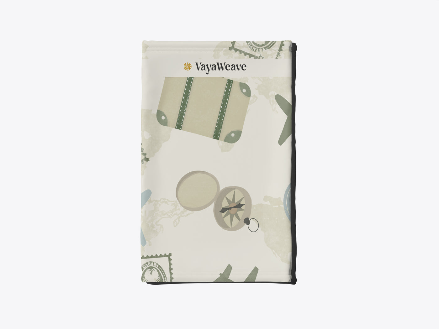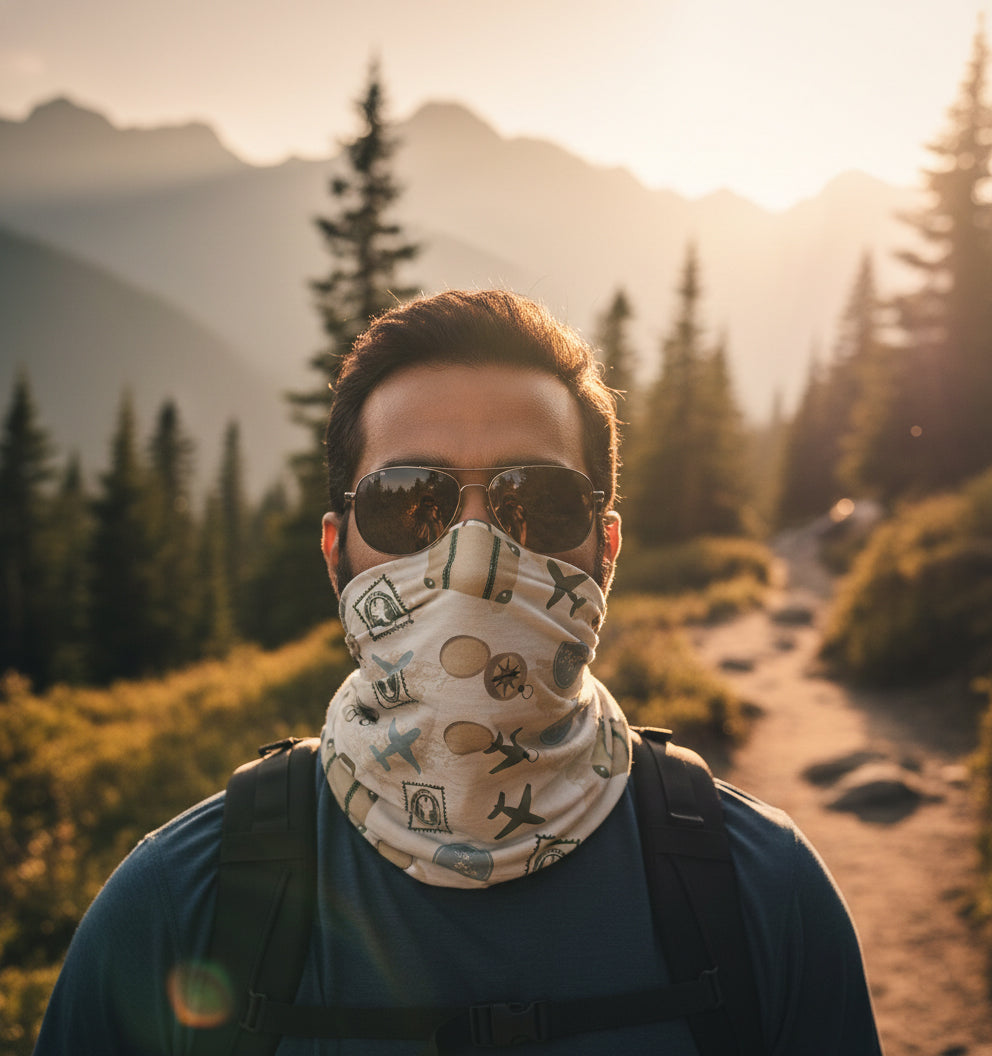 Muted earthy tones and soft pastels give the bandana a nostalgic, collectible feel, while the seamless pattern keeps it versatile for everyday wear. Whether wrapped around your neck on a road trip, worn as a headband on a trail, or styled casually in the city, this bandana celebrates the spirit of wanderlust without borders.