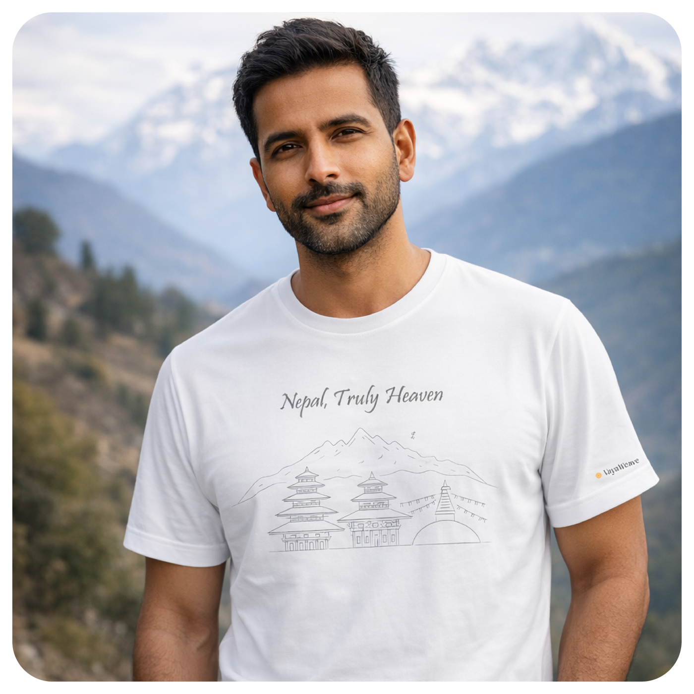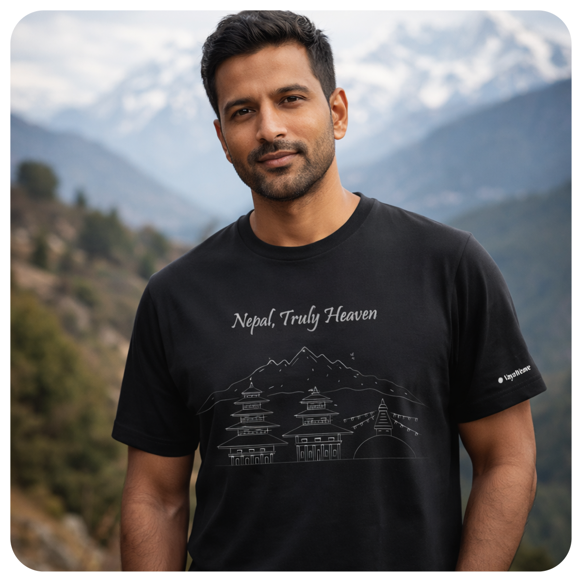 This design draws inspiration from Nepal’s timeless landscape, where towering Himalayan peaks rise behind centuries-old pagoda temples, prayer flags flutter with intention, and life moves in rhythm with the mountains.